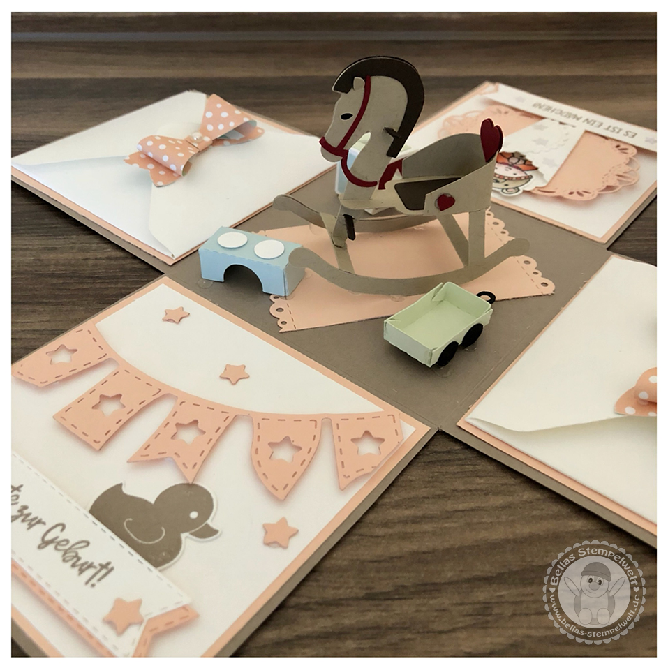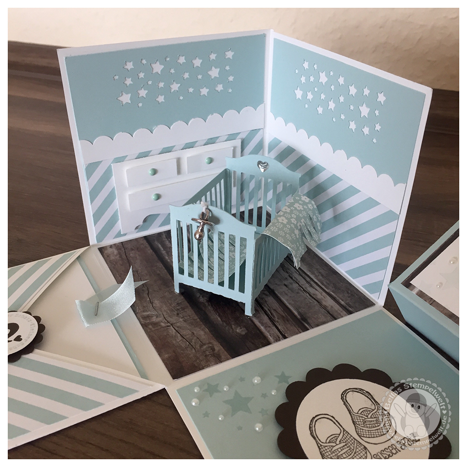 heute möchte ich euch mal eine Explosionsbox zu einem anderen Thema zeigen und zwar zur Geburt. :o) Hierfür habe ich eine ganz süße Variante gebastelt und ein kleines Kinderzimmer in die Box gezaubert.