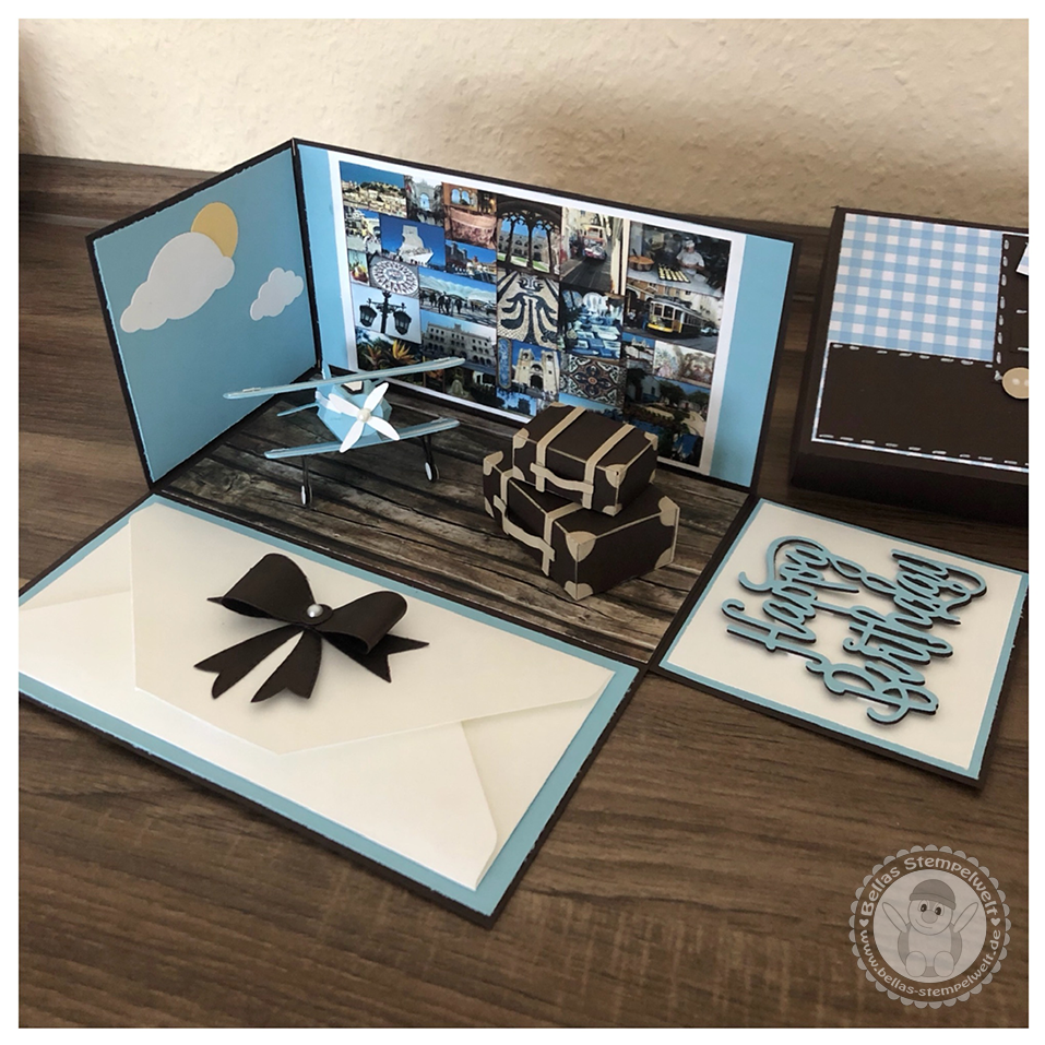 Explosionsbox als Reisegutschein für eine Flugreise zum 40. Geburtstag