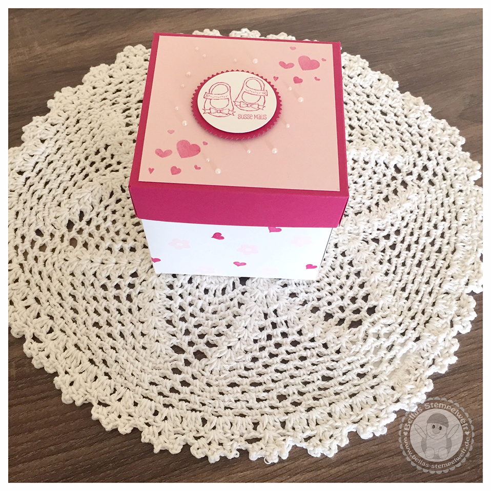 Eine innere Seite der Box habe ich mit einem Stempel aus dem Set "Kleine ganz groß" und die Herzchen sind aus dem Set "Perpetual