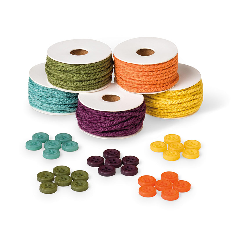 Die 4 Gratisprodukte bestehen aus zwei weiteren wunderschönen Stempelset, sowie ein Zubehörpaket mit Kordeln und Knöpfen aus den